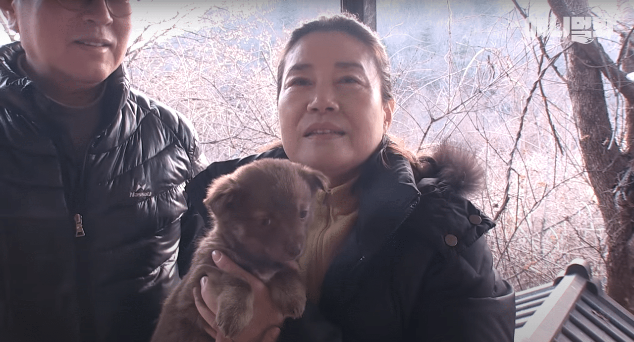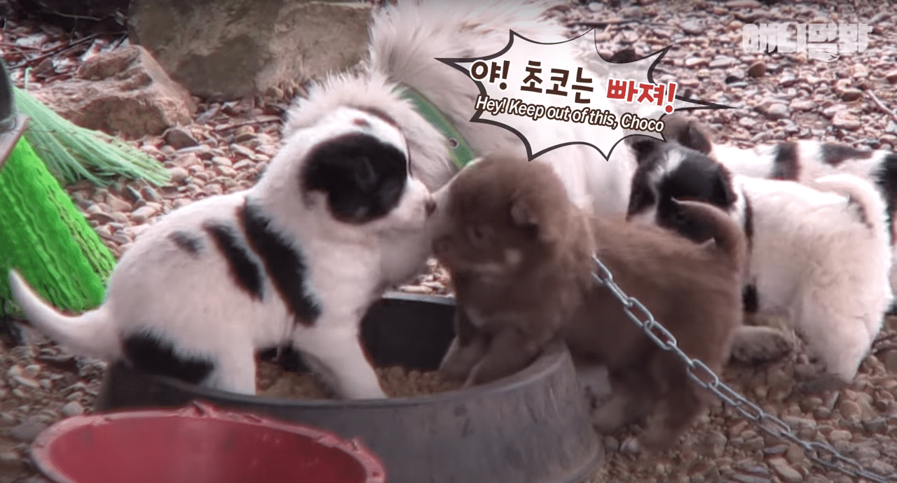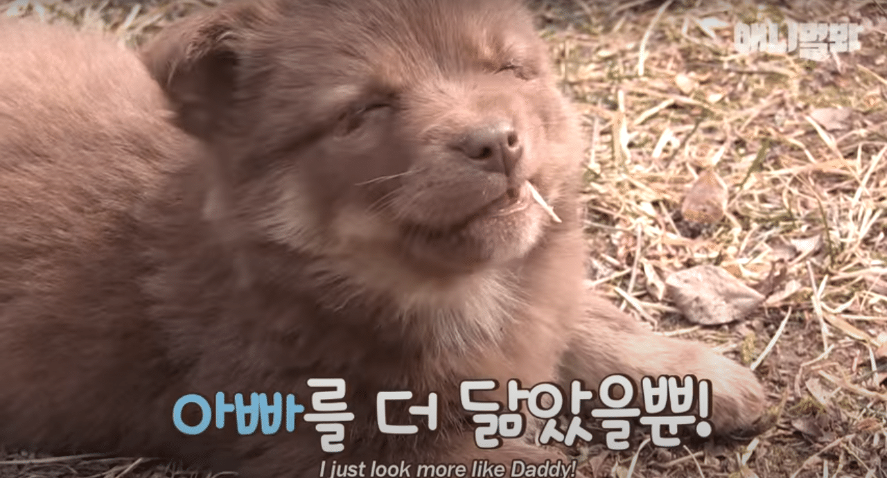 Fortunately, some people knew this choco-pup's dad. So the pup's owner decided to visit the dog daddy to help show the puppy that he's a legitimate offspring on equal footing with his brood.