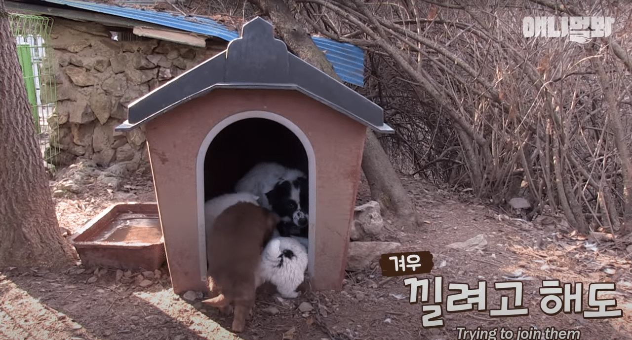 The brown pup tried his best to fit in, but his black-and-white siblings wouldn't let him. Aww, we're so sorry, whelp!